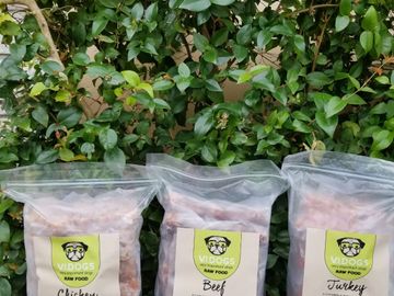 Totalmente natural, sin aditivos ni conservantes, vienen en 3 sabores (pollo, pavo y res).